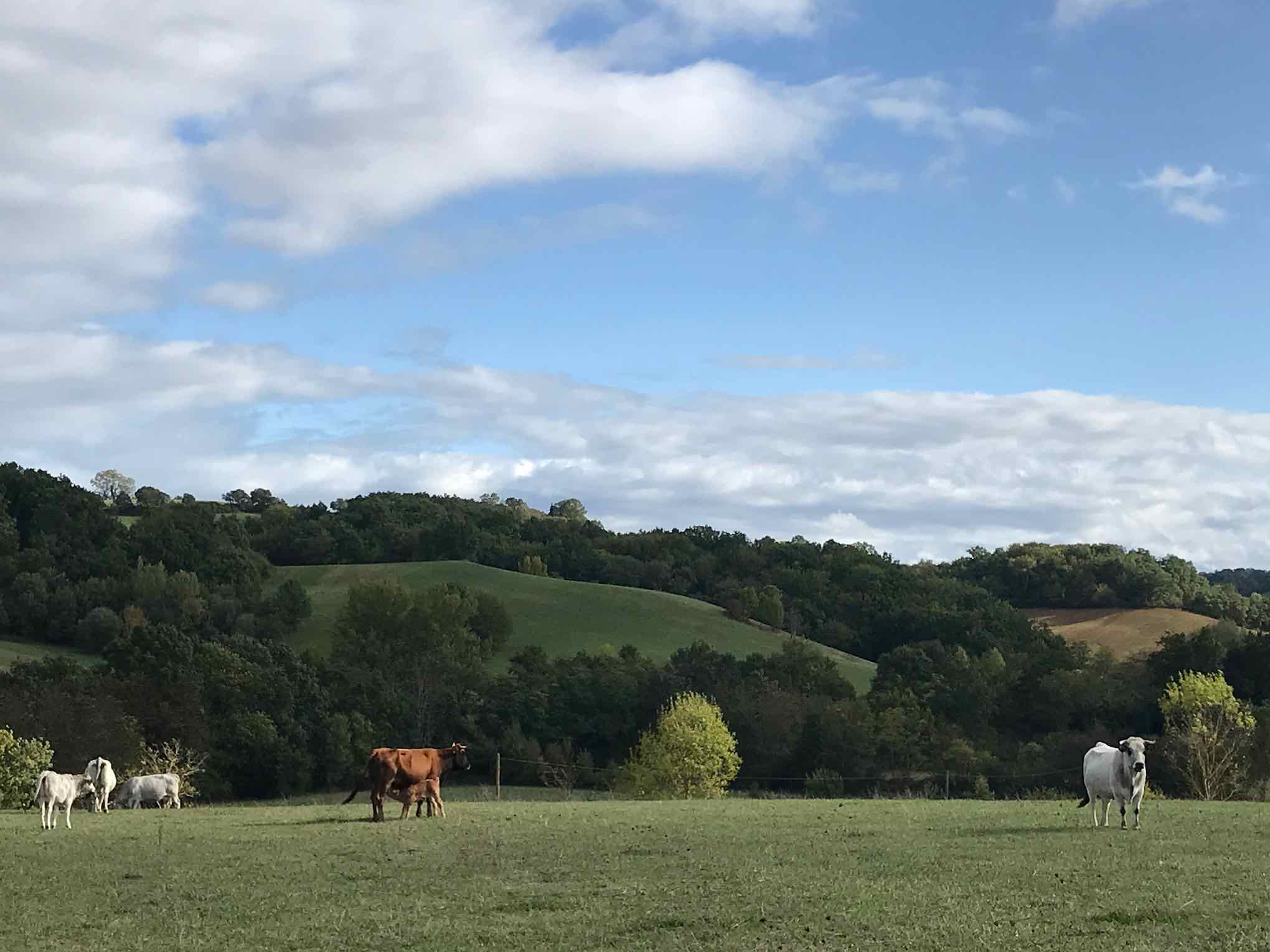 Le cheptel compte entre vingt et vingt-cinq vaches et deux taureaux, de races gasconne et limousine. Les vaches sont intégralement nourries à l’herbe, dans les prés chaque fois que le temps le permet, au foin dans l’étable pendant les mois d’hiver.