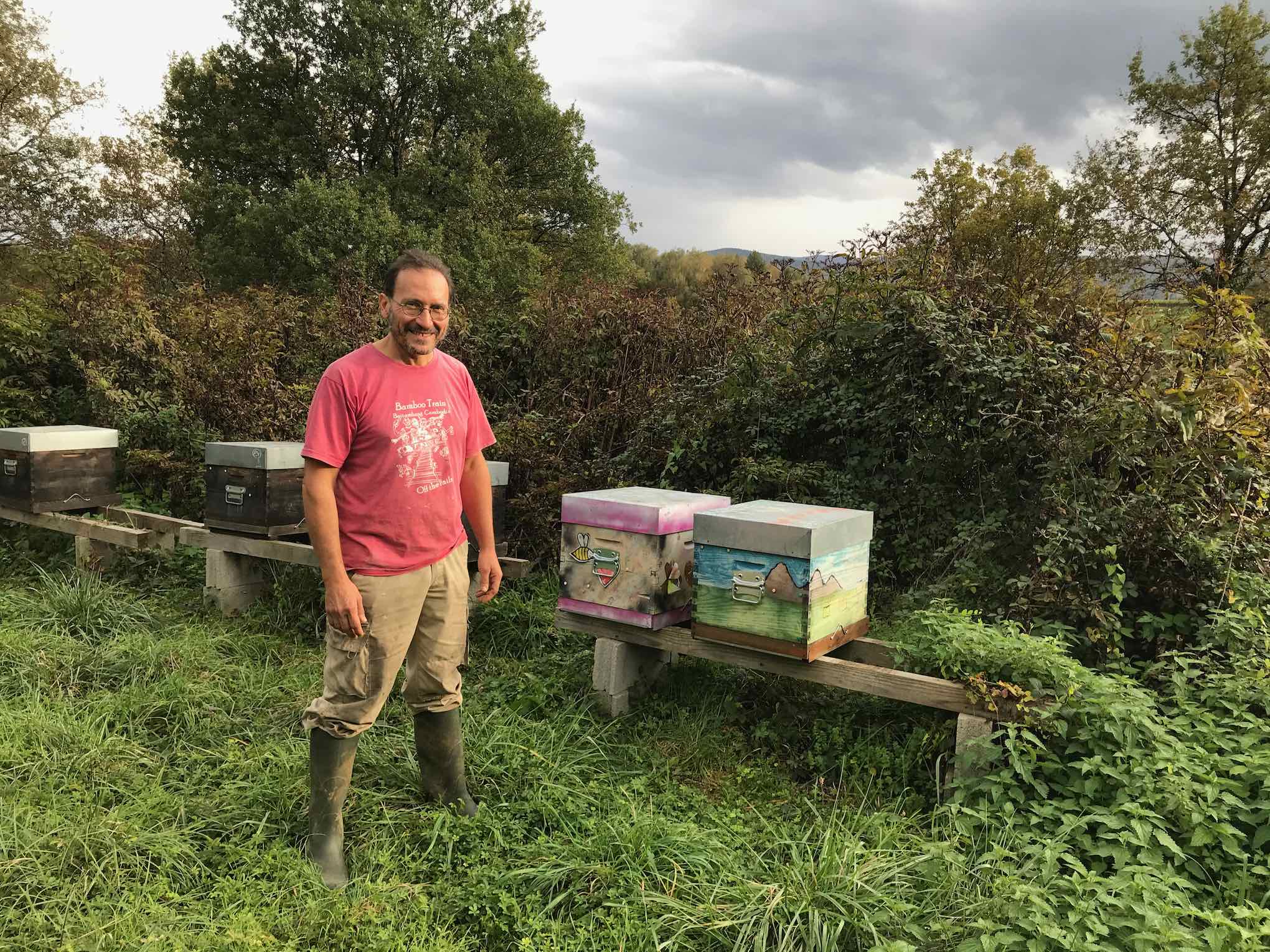 C’est un peu plus tard, en 2018, que Eric rejoint le collectif pour y développer l’activité apicole après une autre vie professionnelle dans le réseau des Biocoop et une formation de naturopathe.
