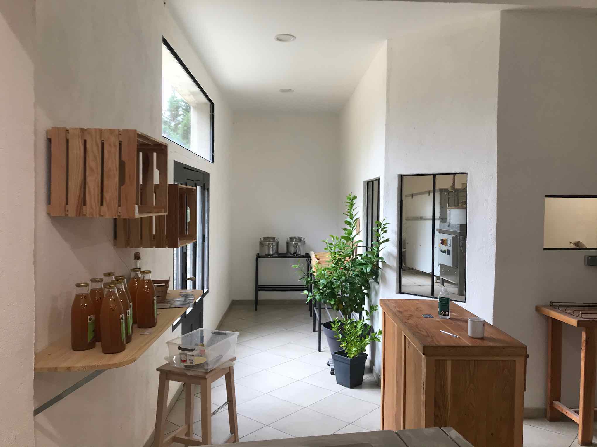 * le fournil comprenant le moulin, un atelier de fabrication, le four à pain et un espace de vente