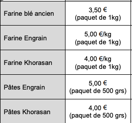 • Les céréales sont moulues en farines, principalement pour faire le pain vendu à la ferme (100 kg par semaine), des pâtes et un peu de farine aux Amap.